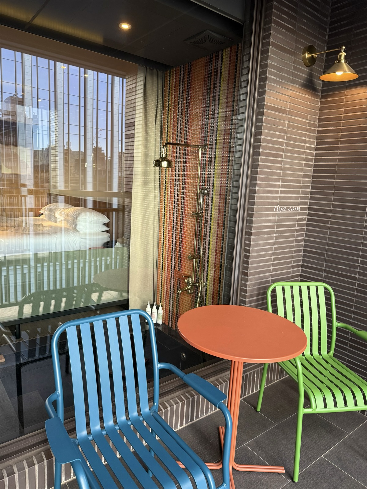 台北大安伊普索酒店豪華客房附設的私人露台,可以遠眺台北市景。