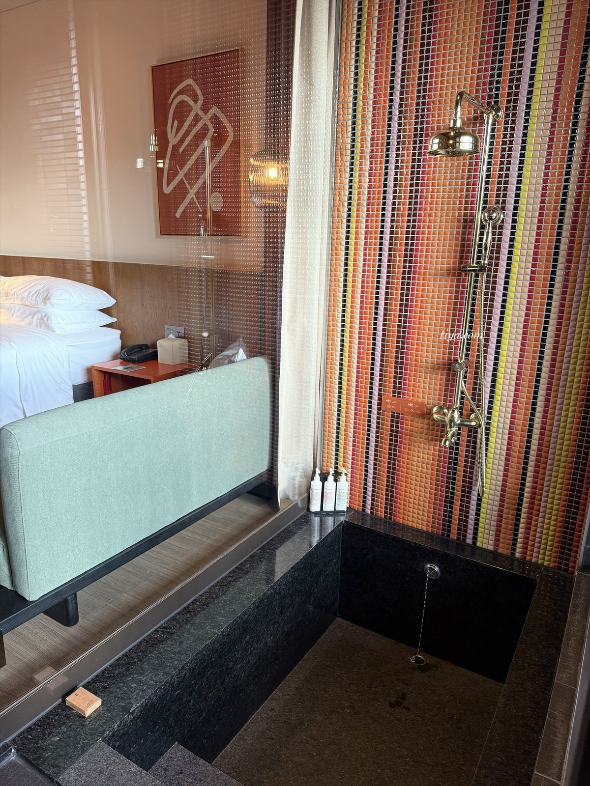 飯店貼心提供浴鹽與來自美國紐約的 MALIN+GOETZ 洗沐組,沐浴味道溫和清新,無論是結束行程後想放鬆,或是早晨泡個暖浴,搭配獨特的空間配置與暖調燈光,在市中心城市也偷得靜謐時刻。
